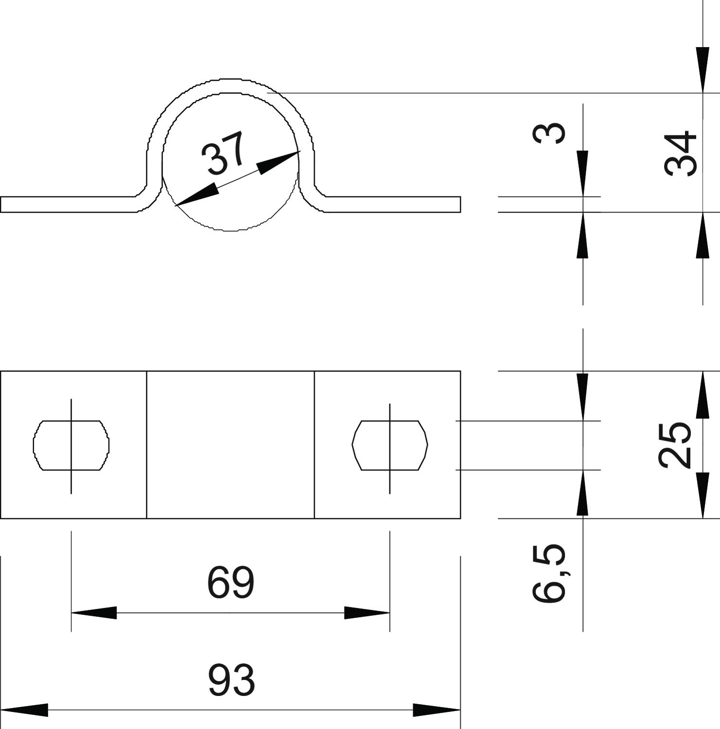Bevestigingsklem twee voetjes 37mm staal verzinkt VVE=100 OBO