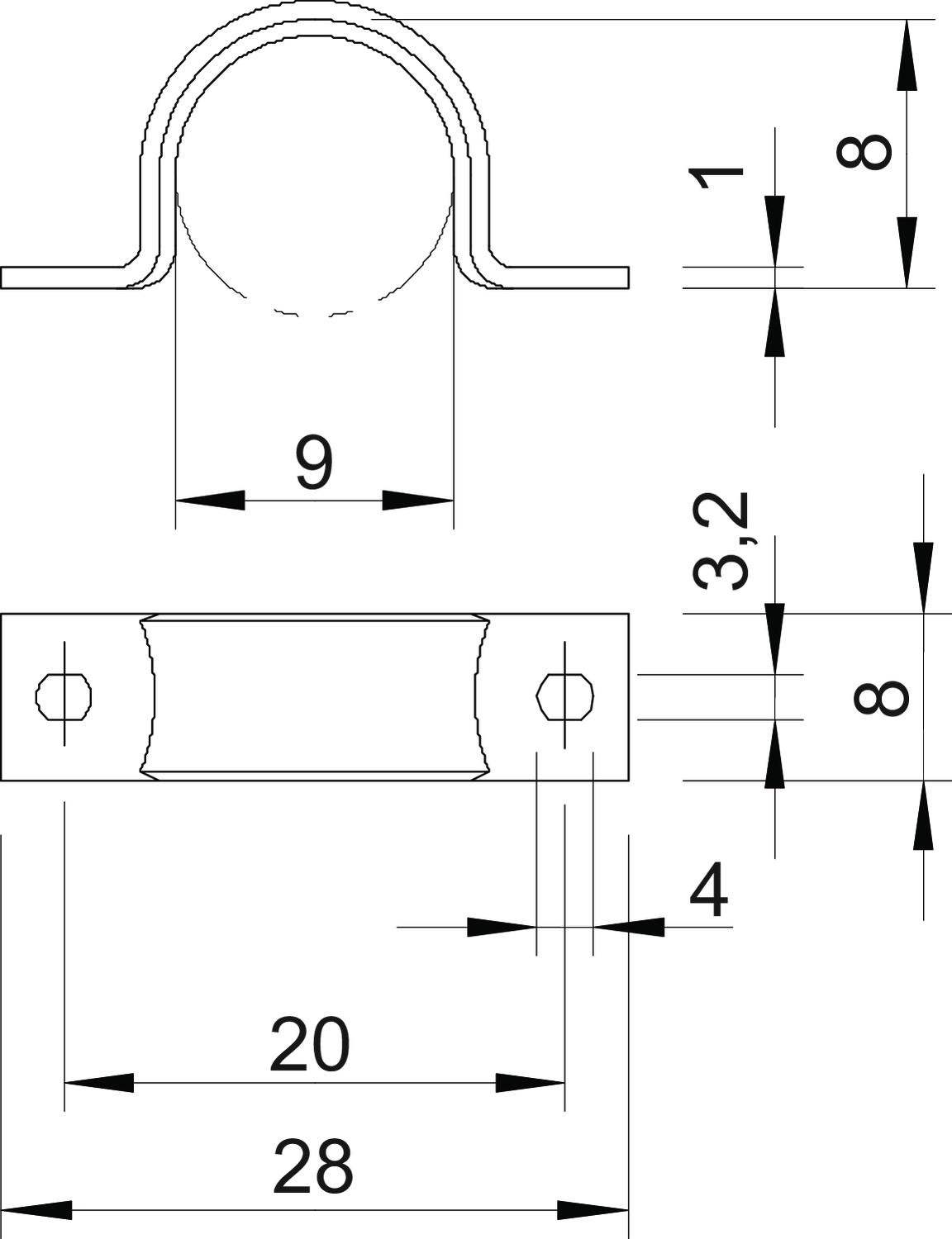 Bevestigingsklem twee voetjes 9mm staal verzinkt VVE=100 OBO