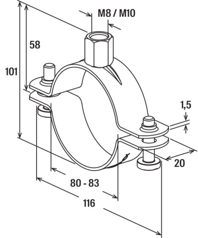 Pijpbeugel FRSN 80-83mm M8/M10 VVE=25 Fischer