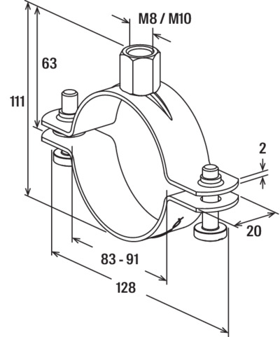 Pijpbeugel FRSN 83-91mm M8/M10 VVE=25 Fischer