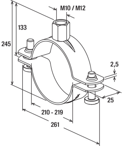 Pijpbeugel FRSN 210-219mm M10/M12 VVE=10 Fischer