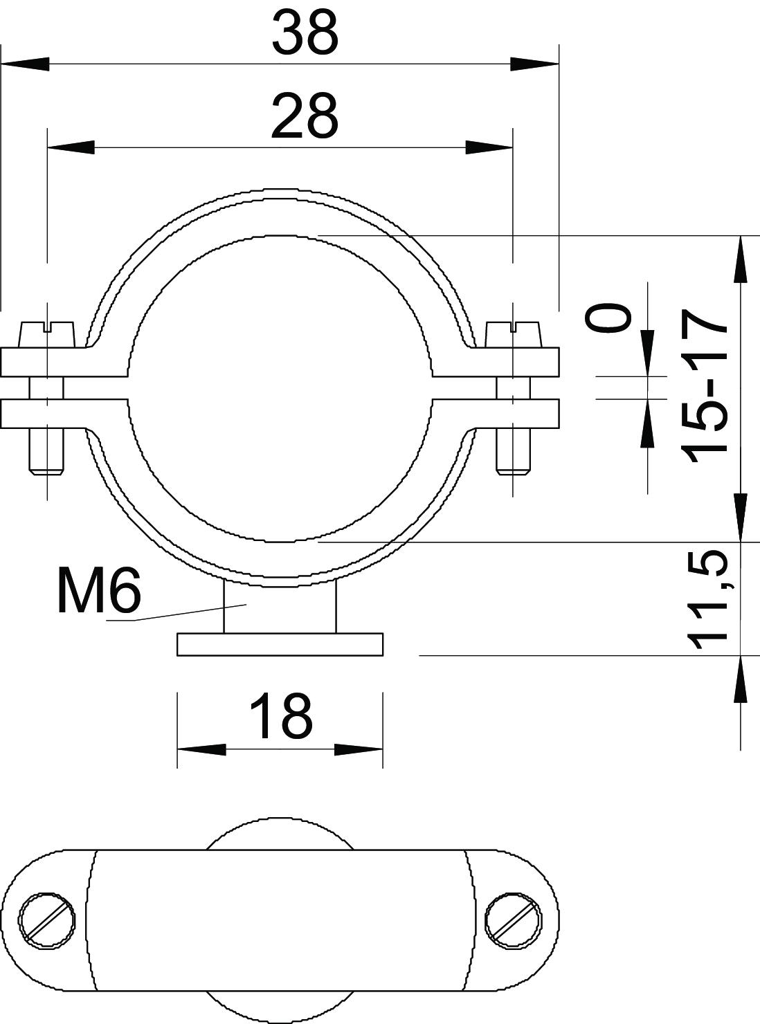 Sokkelklem ISO schroefb. op M6 15mm Polystyreen lichtgrijs RAL7035 VVE=50 OBO