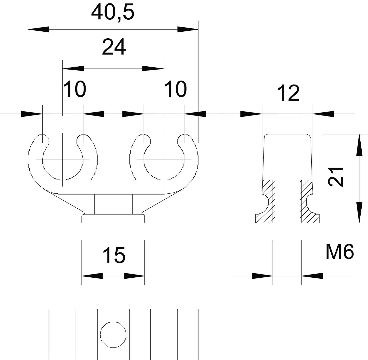 Sokkel-klembeugel 2 kabels 10mm polypr. li.grijs VVE=100 OBO