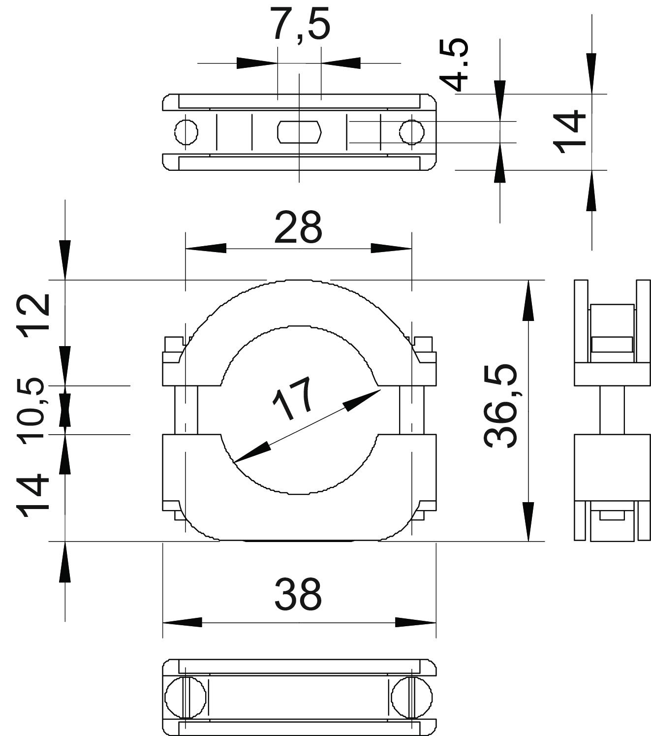Zware-ISO-beugel met sleufopening 10-17mm Polystyreen lichtgrijs RAL7035 VVE=50 OBO