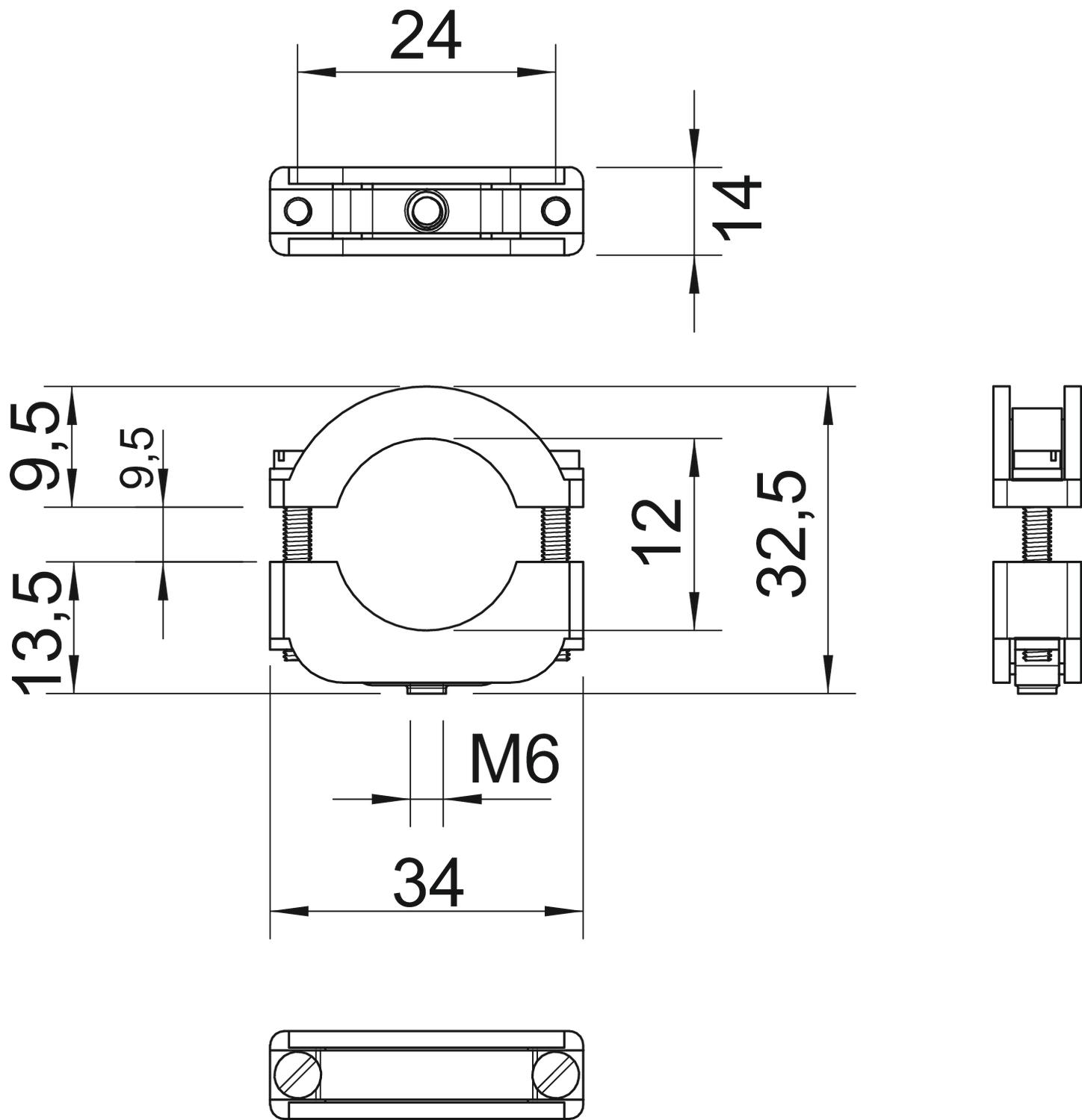 Zware-ISO-beugel met draadaansluiting M6 6-12mm Polystyreen lichtgrijs RAL7035 VVE=50 OBO