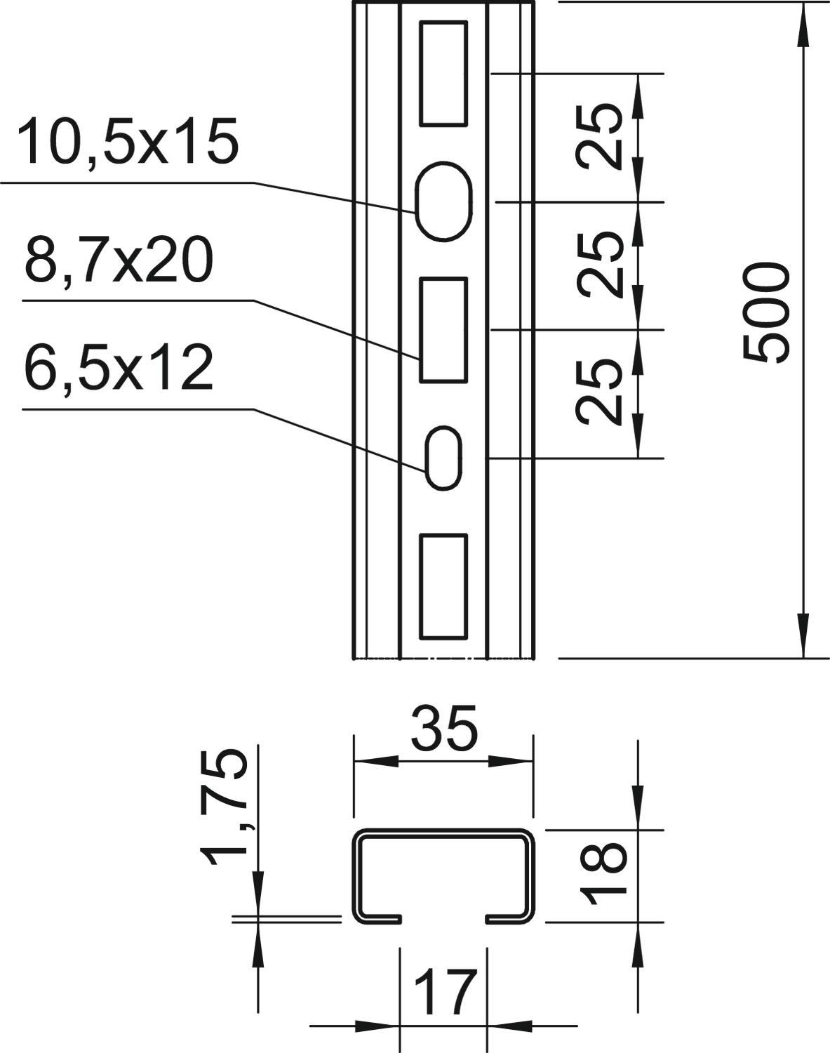 Profielrail geperf. sleufbreedte 17mm 500x35x18 VVE=10 OBO