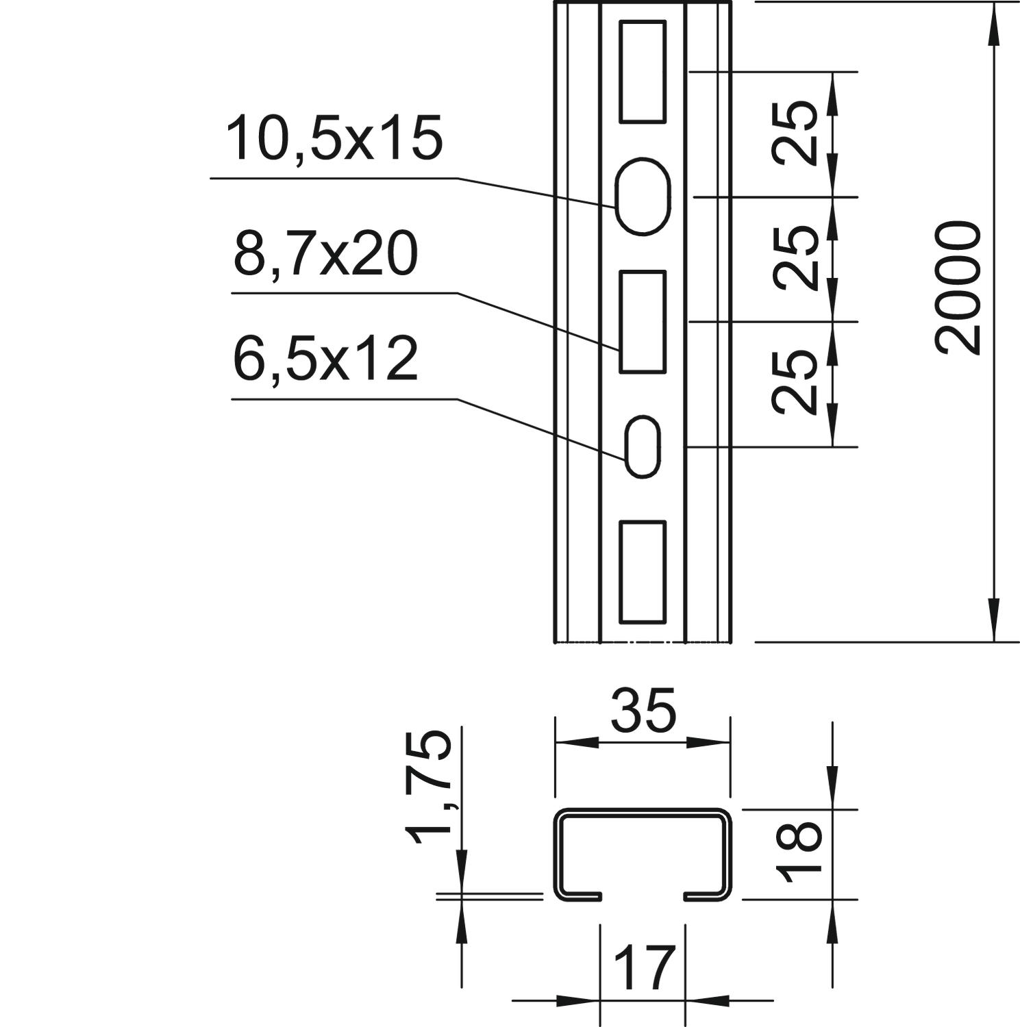 Lengte a 2m. profielrail geperforeerd sleufbreedte 17mm 35x18mm VVE=10 OBO