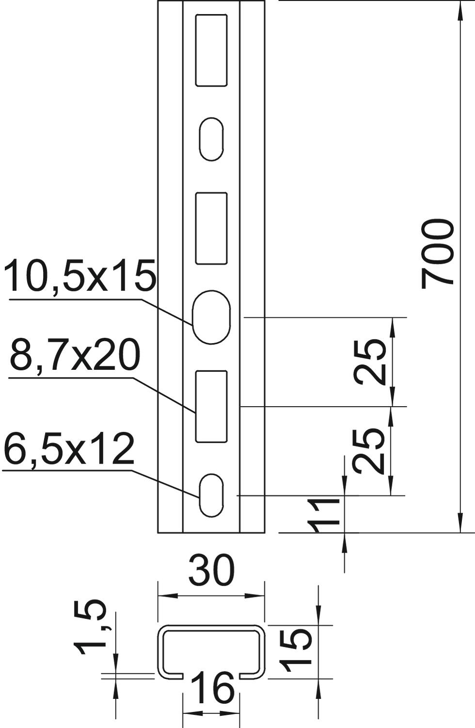Profielrail geperf. sleufbreedte 16mm 700x30x15 staal VVE=10 OBO
