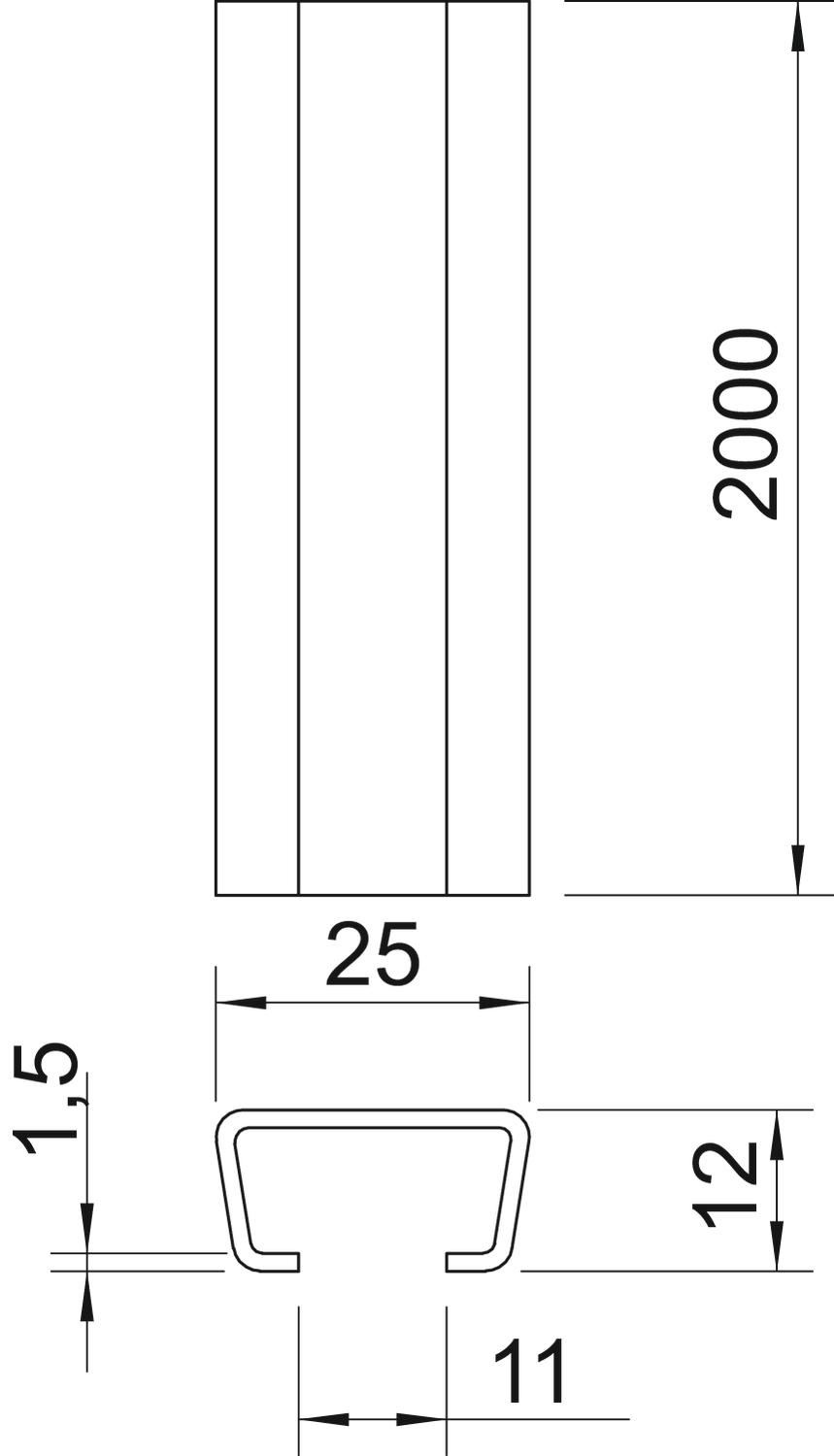 Lengte a 2m. profielrail gesloten sleufbreedte 11mm 25x12mm bandverzinkt OBO