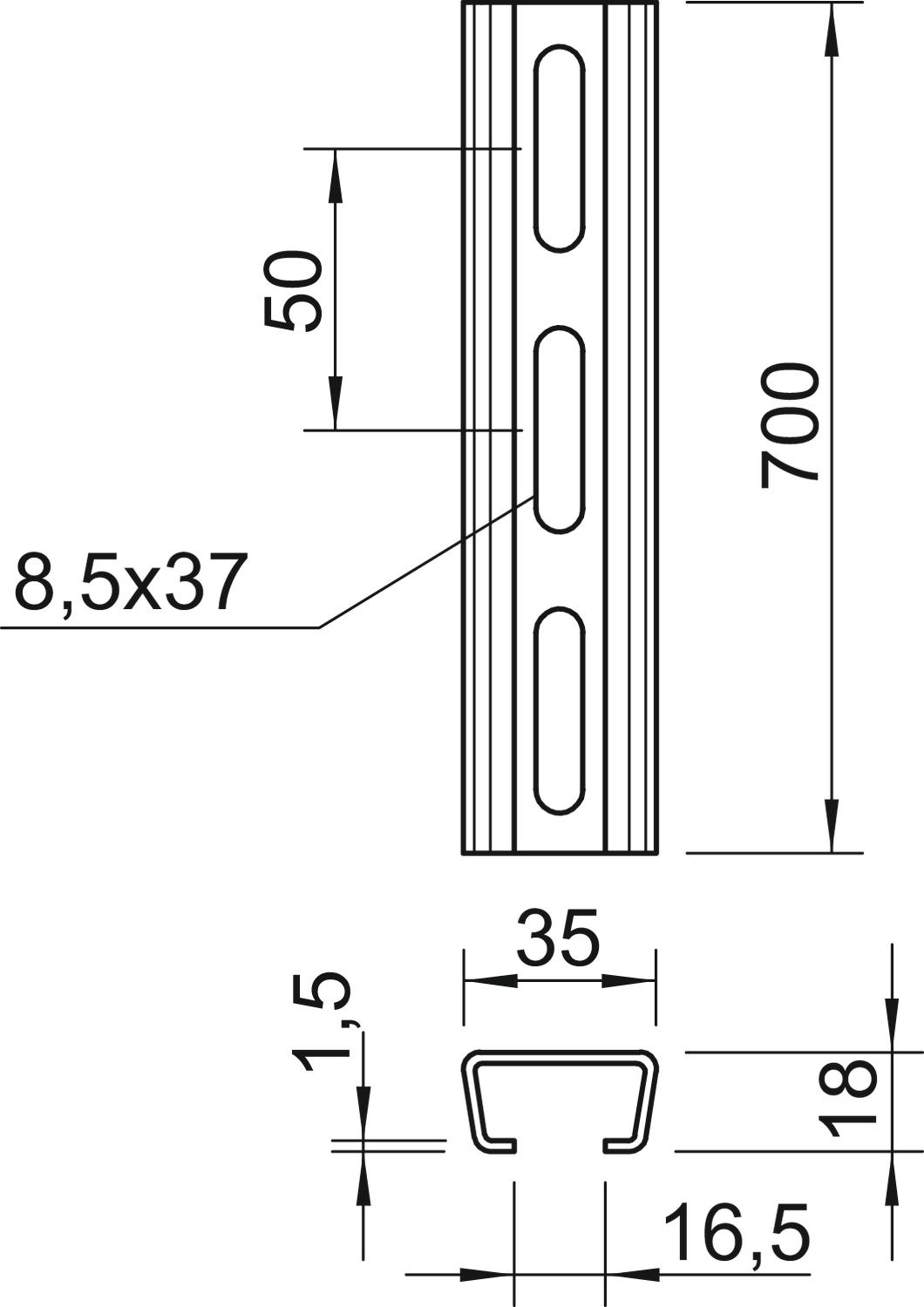 Profielrail geperf. sleufbreedte 16,5mm 700x35x18 VVE=10 OBO
