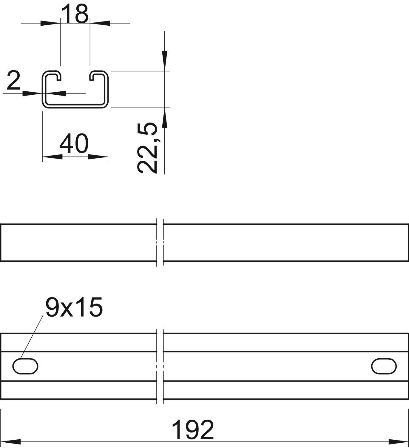 Profielrail voor U-profiel 192x40x22,5 staal zinkt OBO