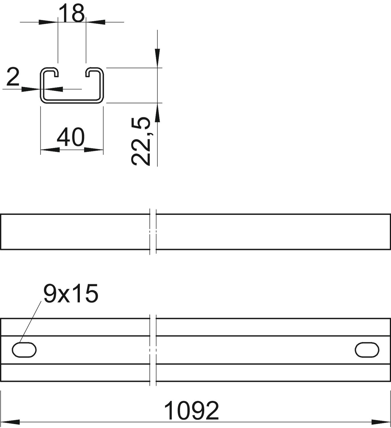 Profielrail voor U-profiel 1092x40x22,5 staal zinkt OBO