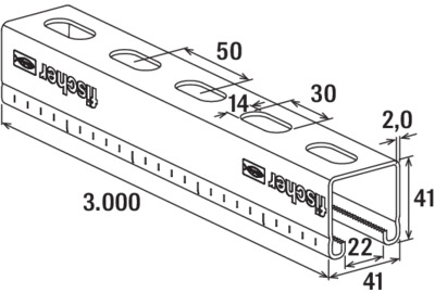 Lengte a 3m. montagerail FUS 41/2.0 therm. verzinkt Fischer