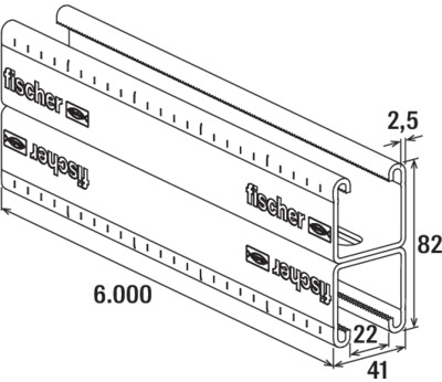 Lengte a 6m. montagerail FUS 41D/2.5 rvs A4 Fischer