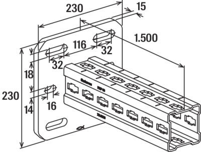 - Breedte rail: 230 mm