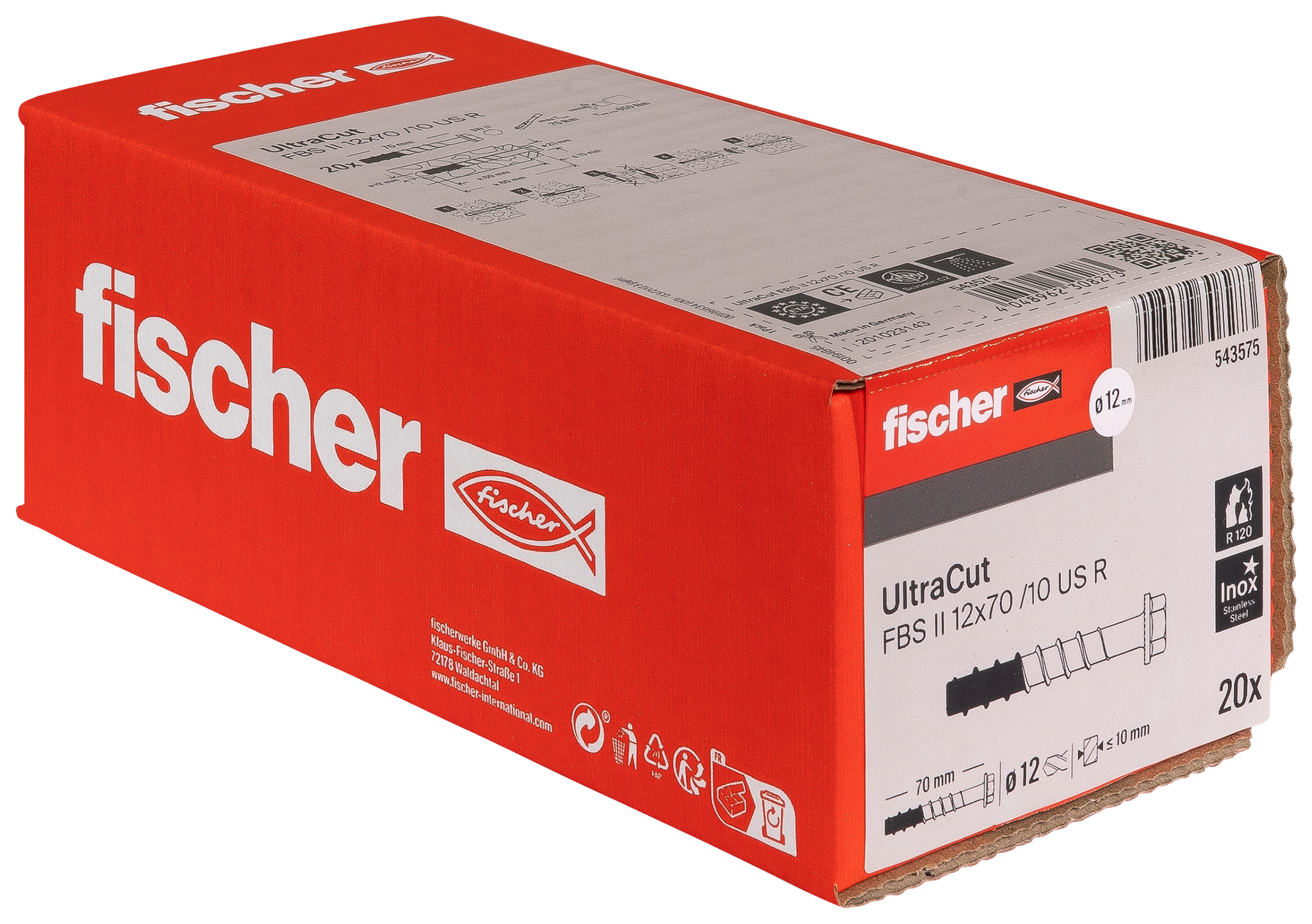 Betonschroef FBS II 12x70 10/- zeskantkop RVS R VVE=20 Fischer