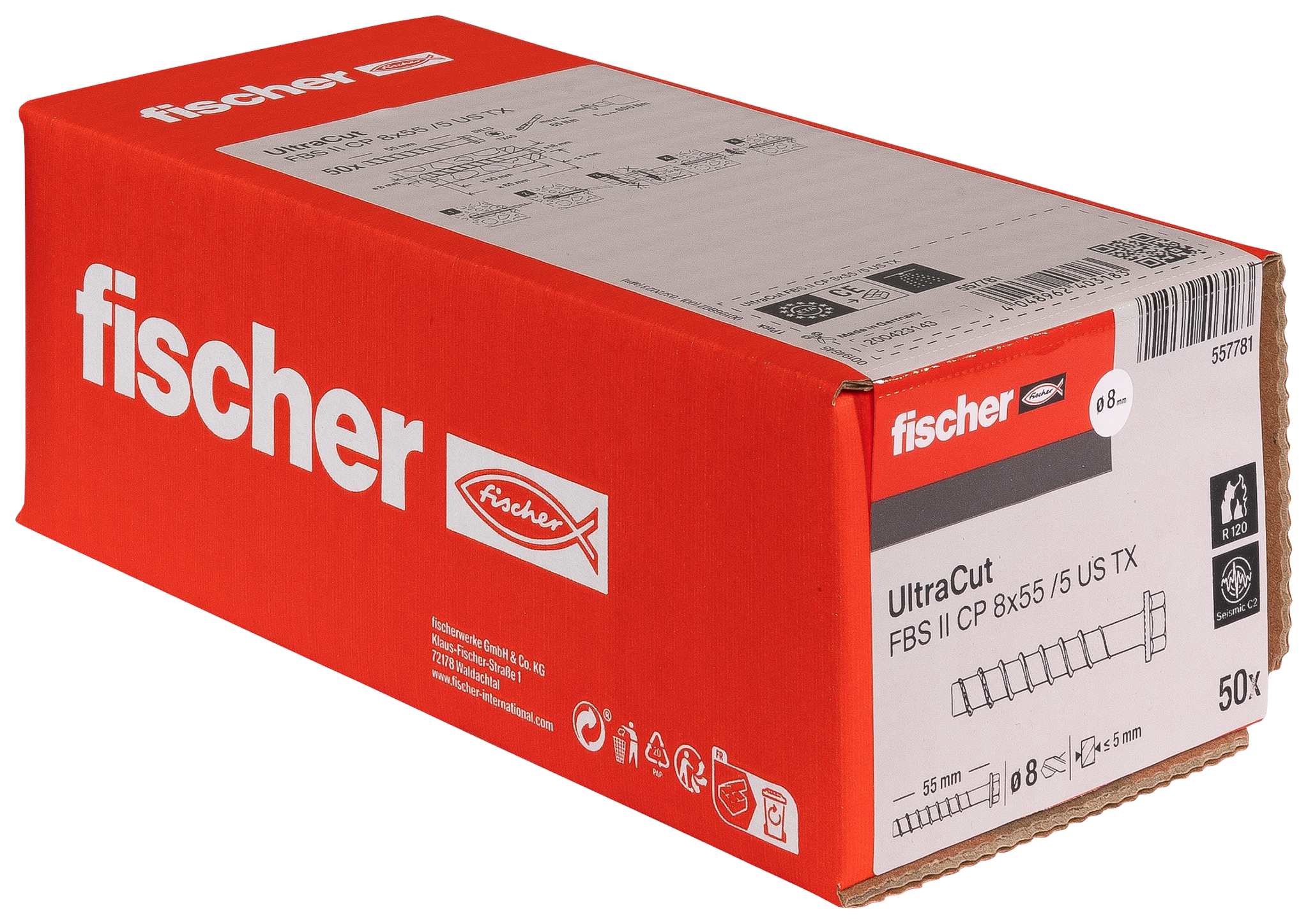Betonschroef FBS II 8x90 25/- verzonken kop RVS R VVE=50 Fischer
