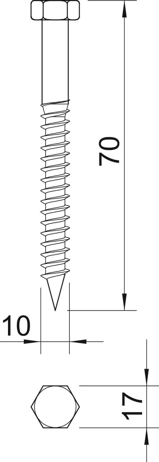 Zeskanthoutschroef 10x70mm staal galvanisch verzinkt VVE=25 OBO