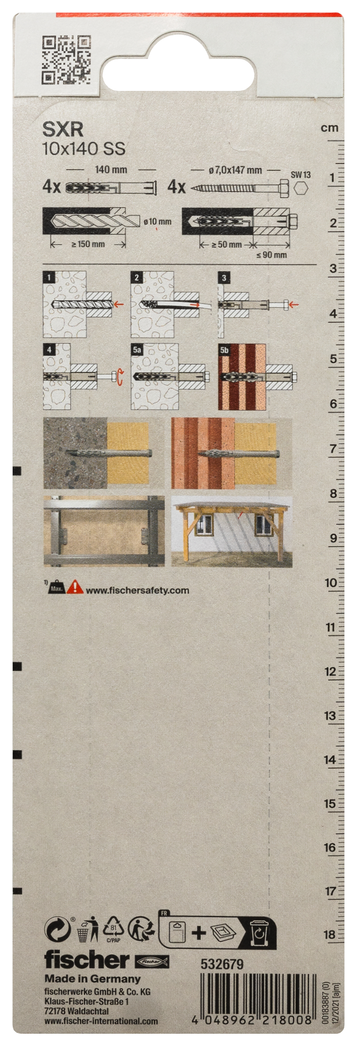 Constructieplug SXR 10x140 SS zeskante bout Fischer