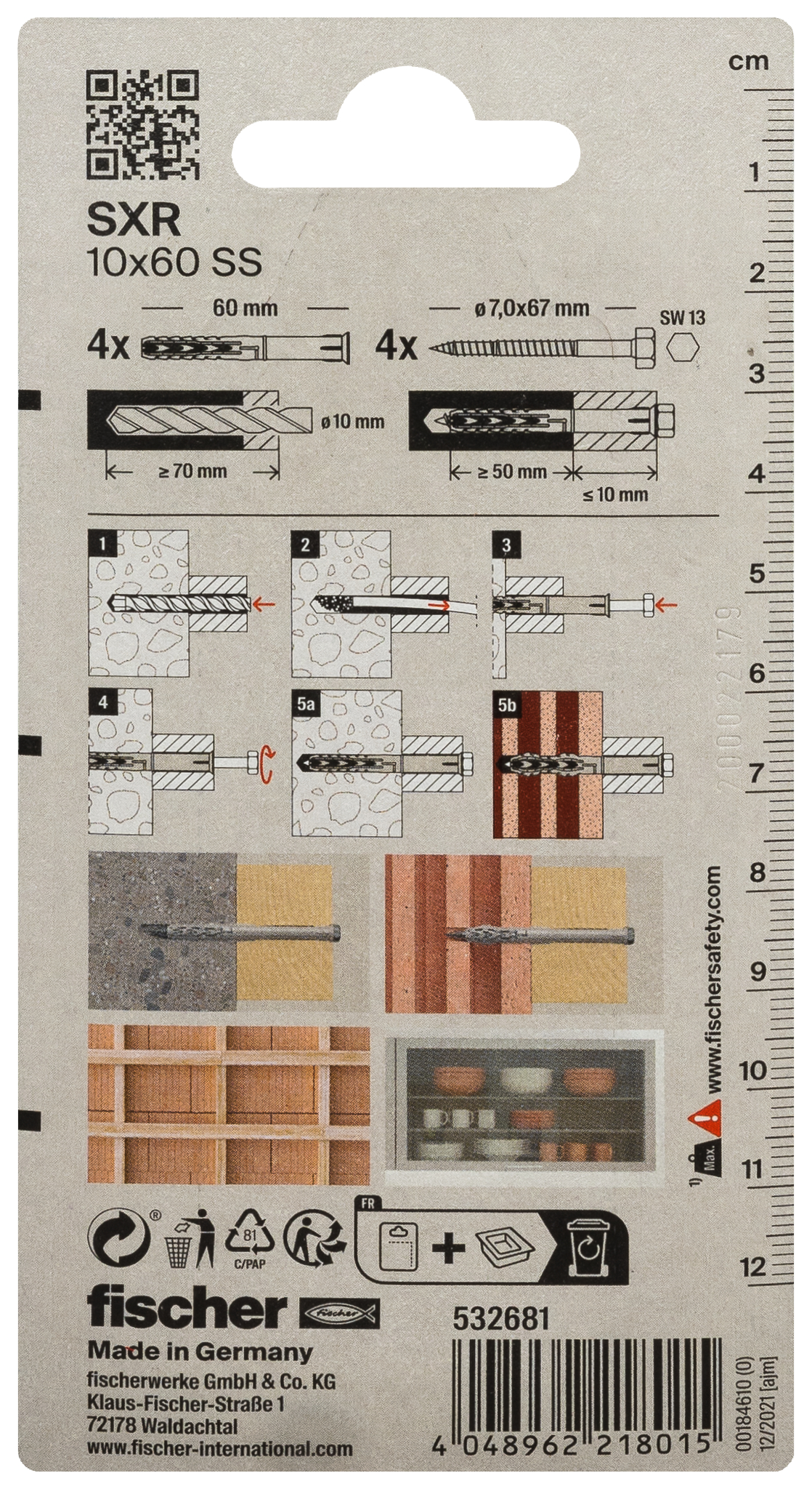 Constructieplug SXR 10x60 SS zeskante bout Fischer