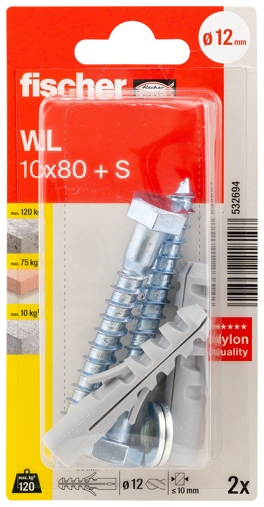 Radiatorbevestiging WL 10x80 K blistercard set 2 schroeven + S pluggen Fischer