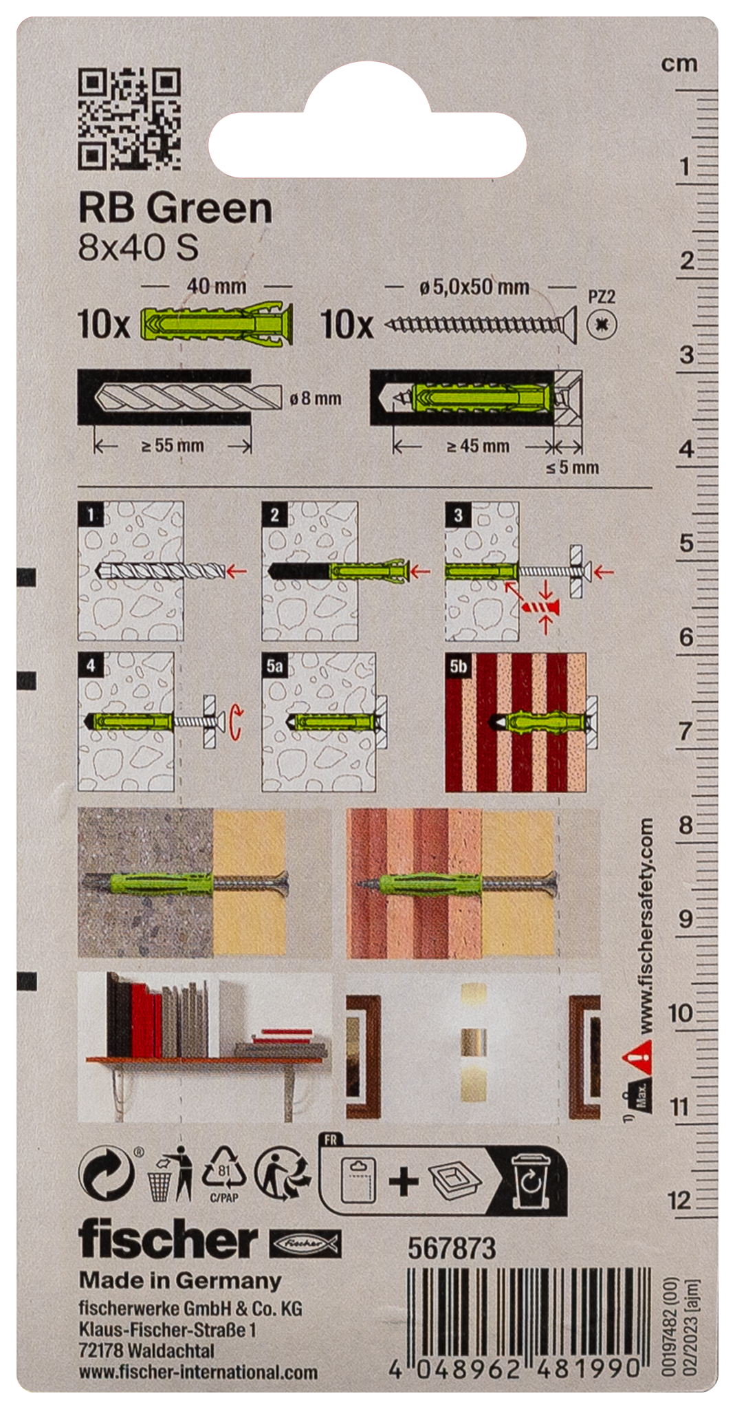 - Type: FISCHER RB 8X40 GREEN K NV PLUG/SCH