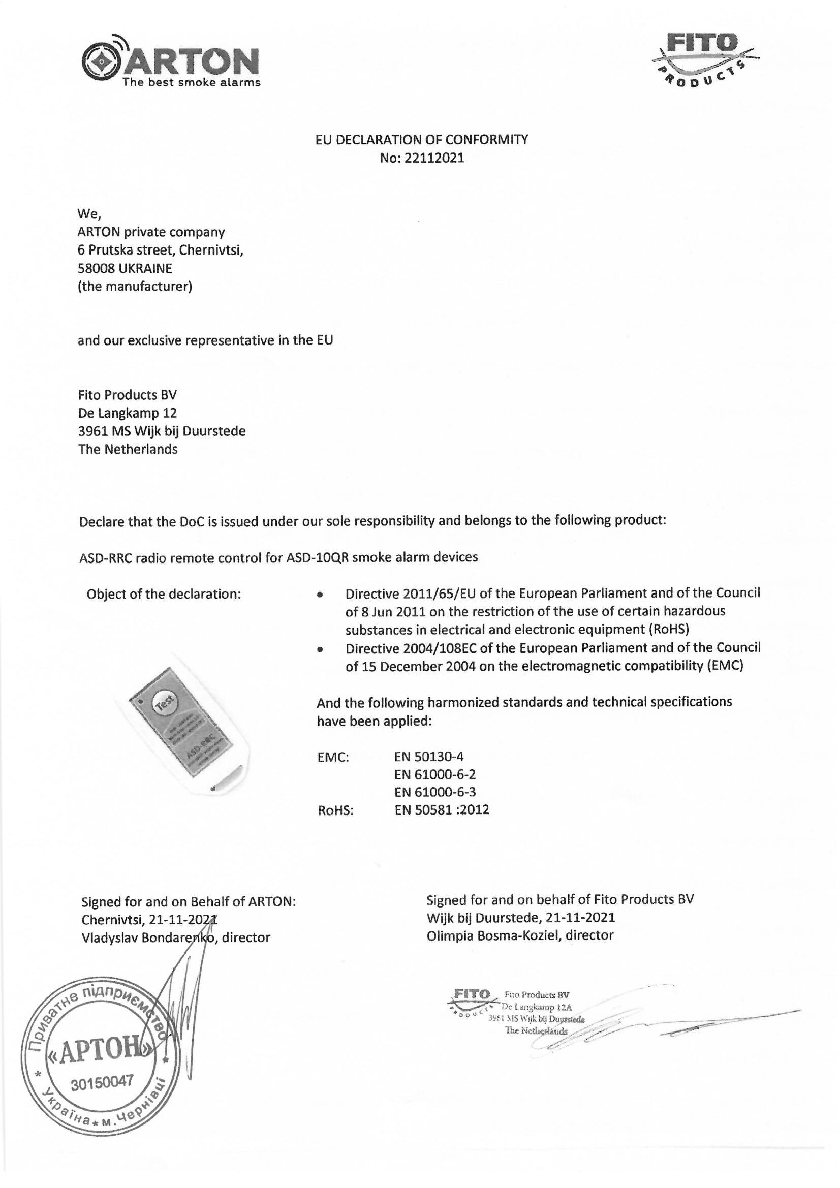 Afstandsbediening ASD-10QR draadloos koppelbare rookmelders FITO
