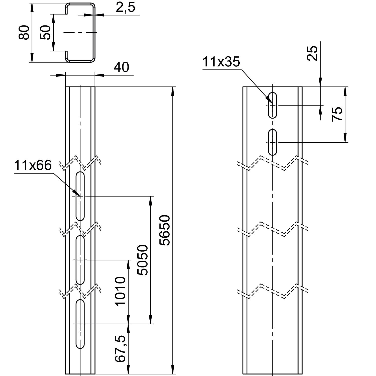 Draagprofiel voor vrijstaand systeem 40x80x5650 Staal thermi OBO