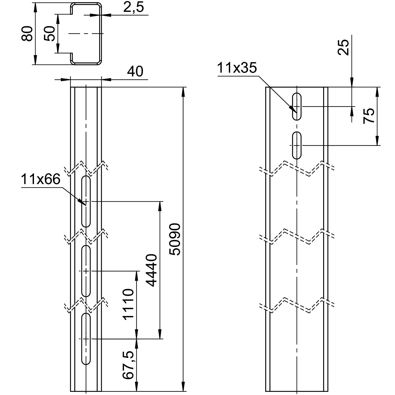 Draagprofiel voor vrijstaand systeem 40x80x5090 Staal thermi OBO