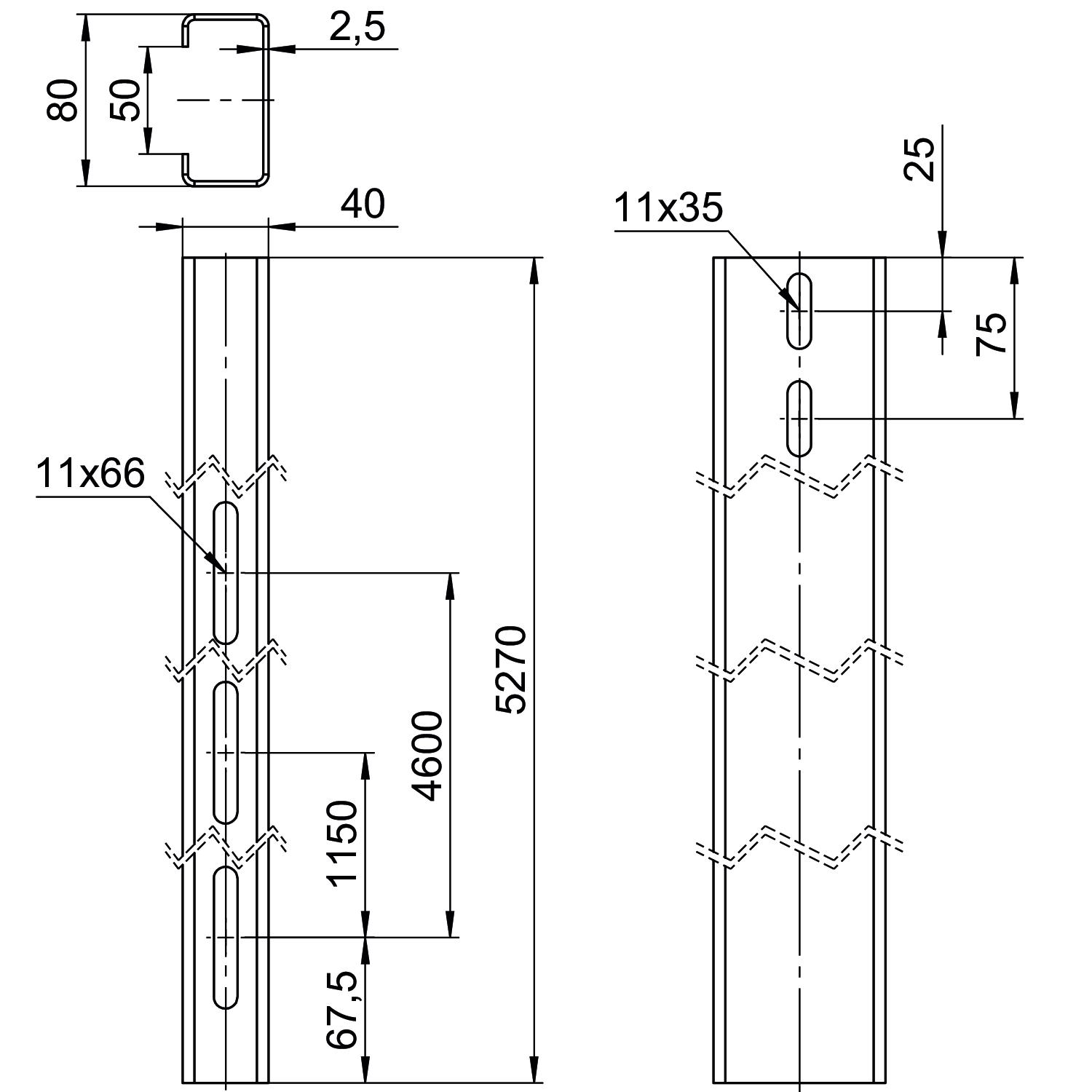 Draagprofiel voor vrijstaand systeem 40x80x5270 Staal thermi OBO