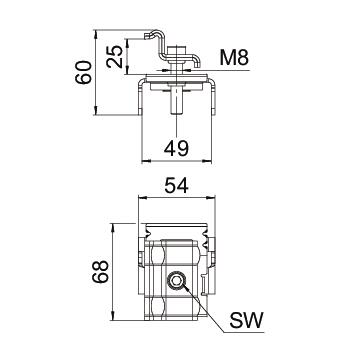 Eindklem vrijstaand systeem 55x70x54 RVS 1.4301 A2 1. VVE=50 OBO