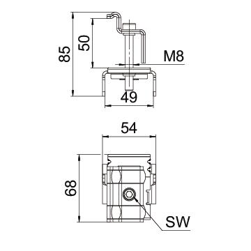 Eindklem vrijstaand systeem 80x70x54 RVS 1.4301 A2 1. VVE=50 OBO