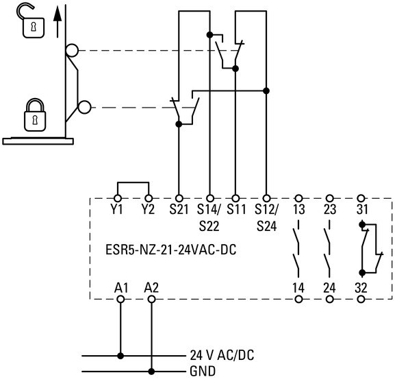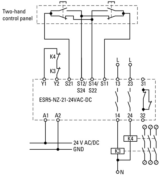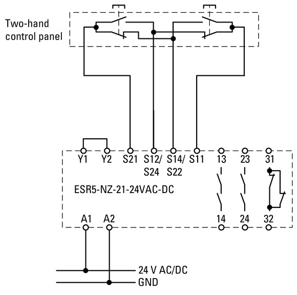 Veiligheidsrelais (24Vac50/60Hz 24Vdc) 2 vrijgave pad.118703 Eaton