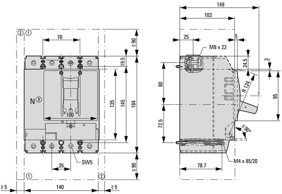 - Nom. afschakelvermogen Icu bij 400 V, 50 Hz: 150 kA