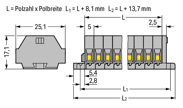 2-draads klemmenstrook z.drukknop+bev.flens 260-102 VVE=100 Wago