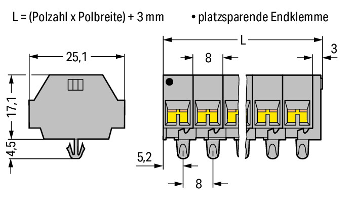 • Aansluitbare geleiderdoorsnede eendraads: 0,08 - 1,5 mm²