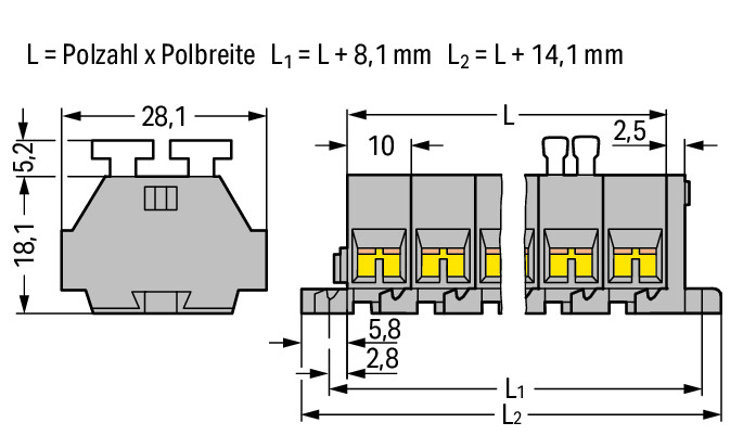 4-draads klemmenstrook 2 zijden knop 261-202/342-000 VVE=100 Wago