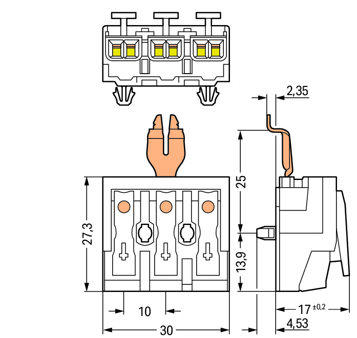 Kroonklem Drukknop extern HA PE-klikcontact 294-5313 VVE=500 Wago