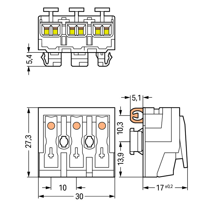 - Aansluitbare geleiderdoorsnede eendraads: 0,5 - 2,5 mm²