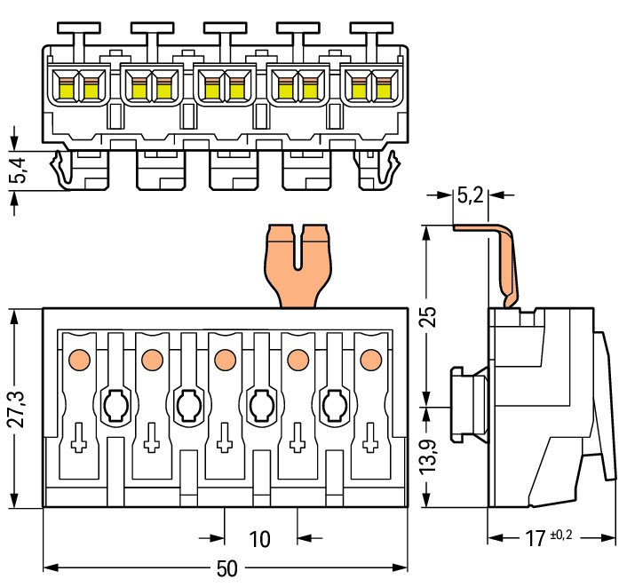 - Aansluitbare geleiderdoorsnede eendraads: 0,5 - 2,5 mm²