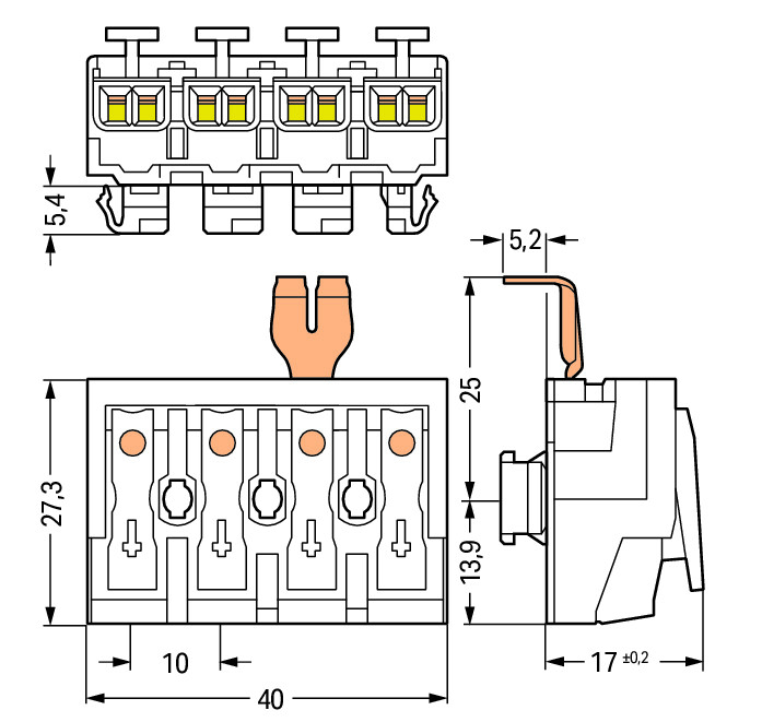 - Aansluitbare geleiderdoorsnede eendraads: 0,5 - 2,5 mm²