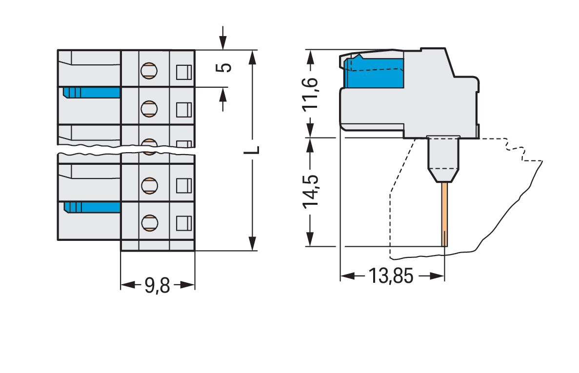 FE steker rijgklem 0,6x1mm HA 722-233/005-000 VVE=100 Wago