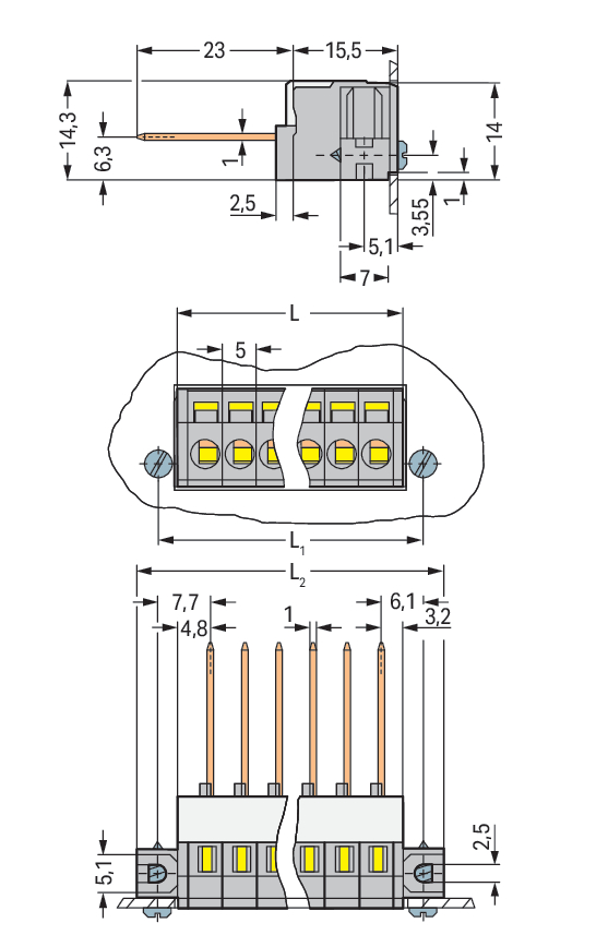 - Aansluitbare geleiderdoorsnede eendraads: 0,08 - 2,5 mm²