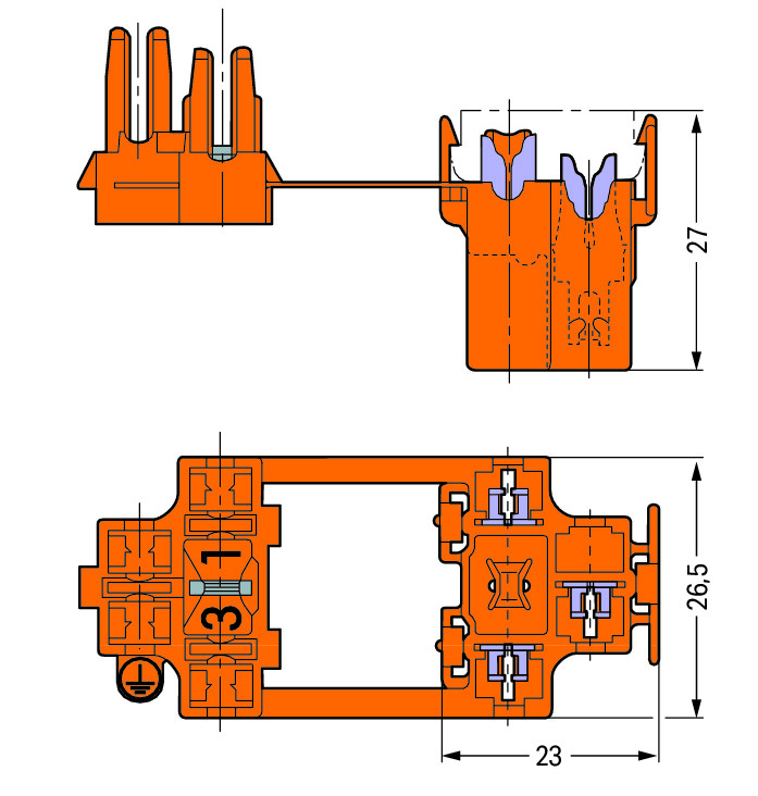 Busstrook automatische L-scheiding 3-polig oranje VVE=50 Wago
