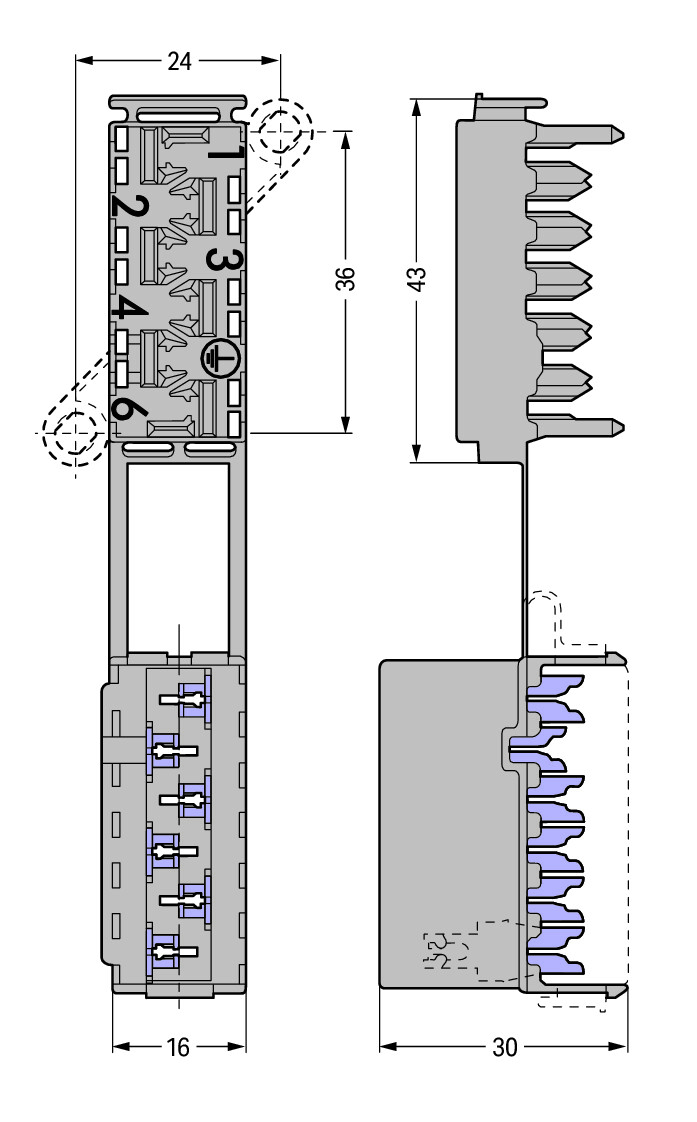 Busstrook Bevestigingsflens 6-polig grijs VVE=50 Wago