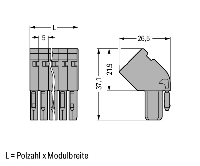 1-draads female steker haaks CAGE CLAMP 4mm² grijs VVE=200 Wago
