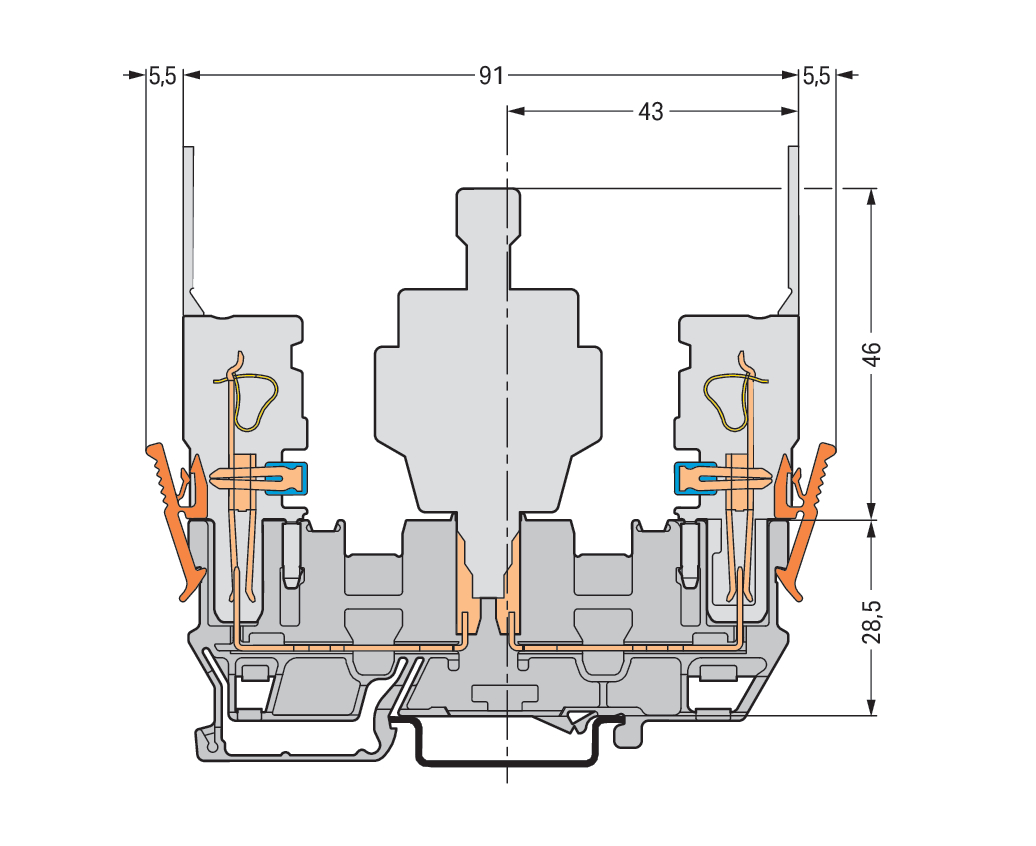 2-pins basisklem 2-voudige dwarsbrug draagrail 35x15 VVE=50 Wago