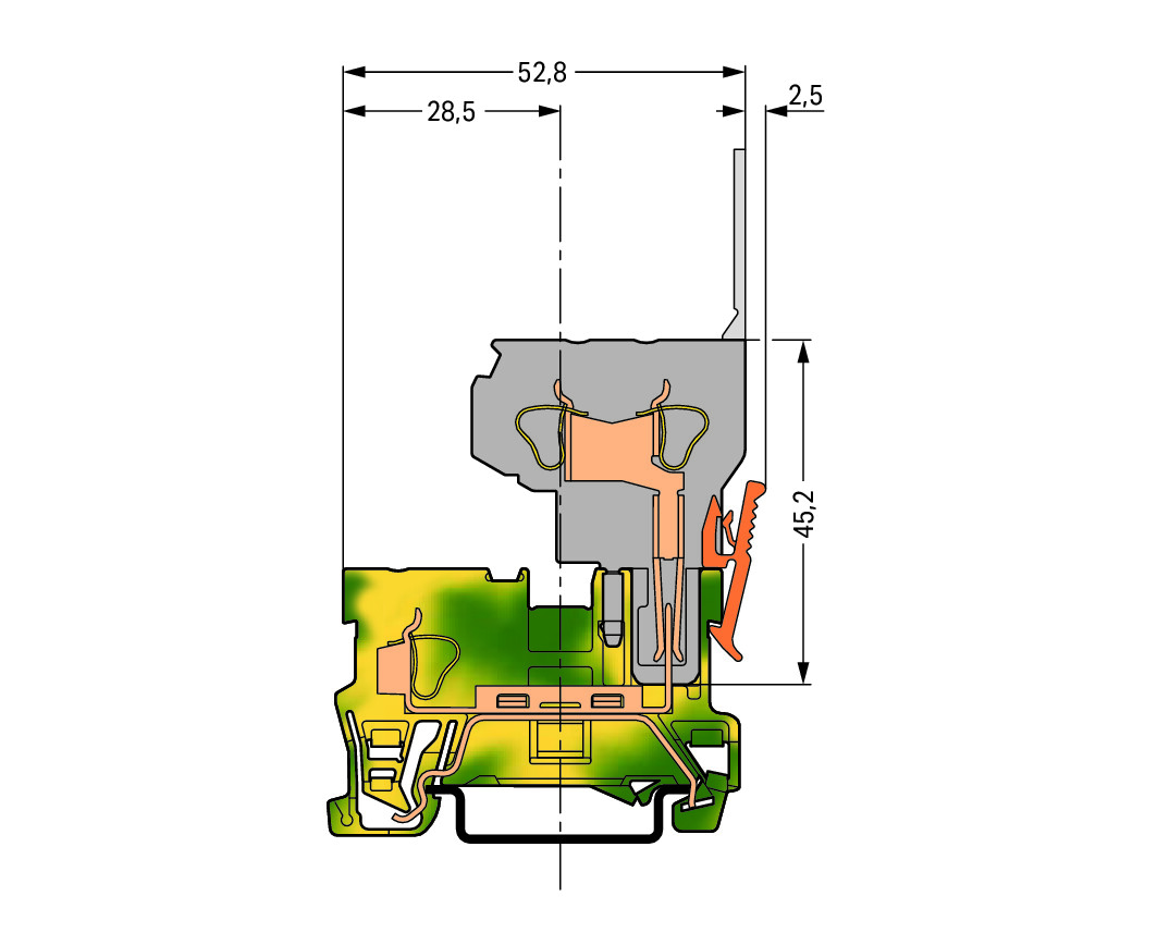 1-draads/1-pins PE-basisklem 4mm² draagrail 35x15/35 VVE=100 Wago