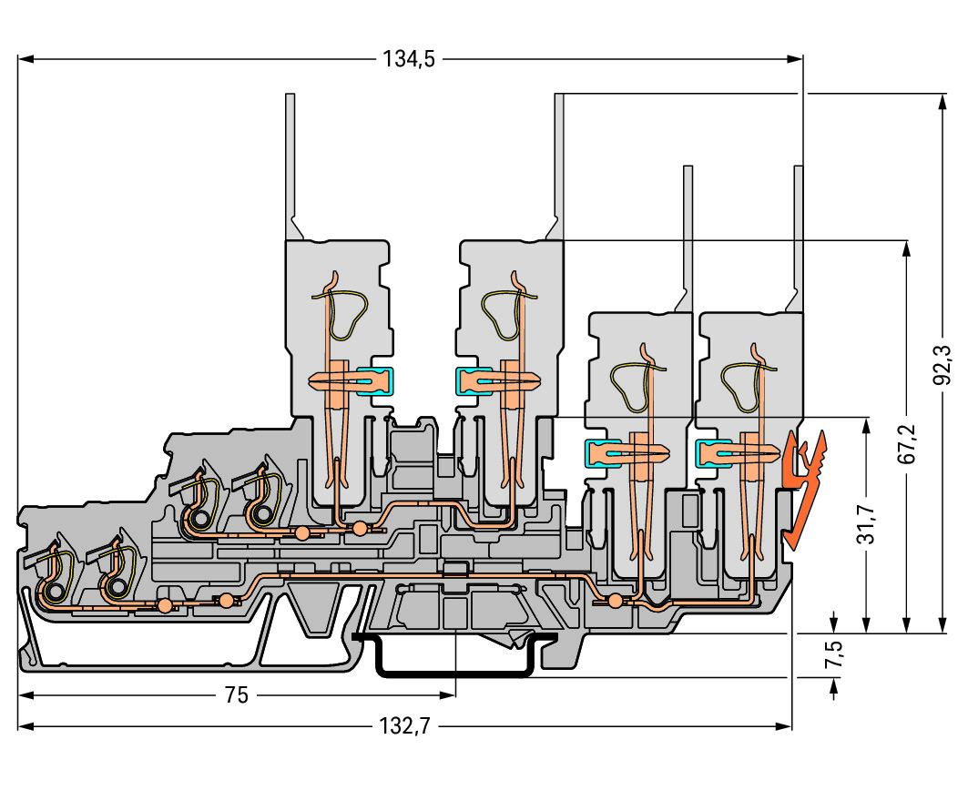 • Aansluitbare geleiderdoorsnede eendraads: 0,08 - 2,5 mm²