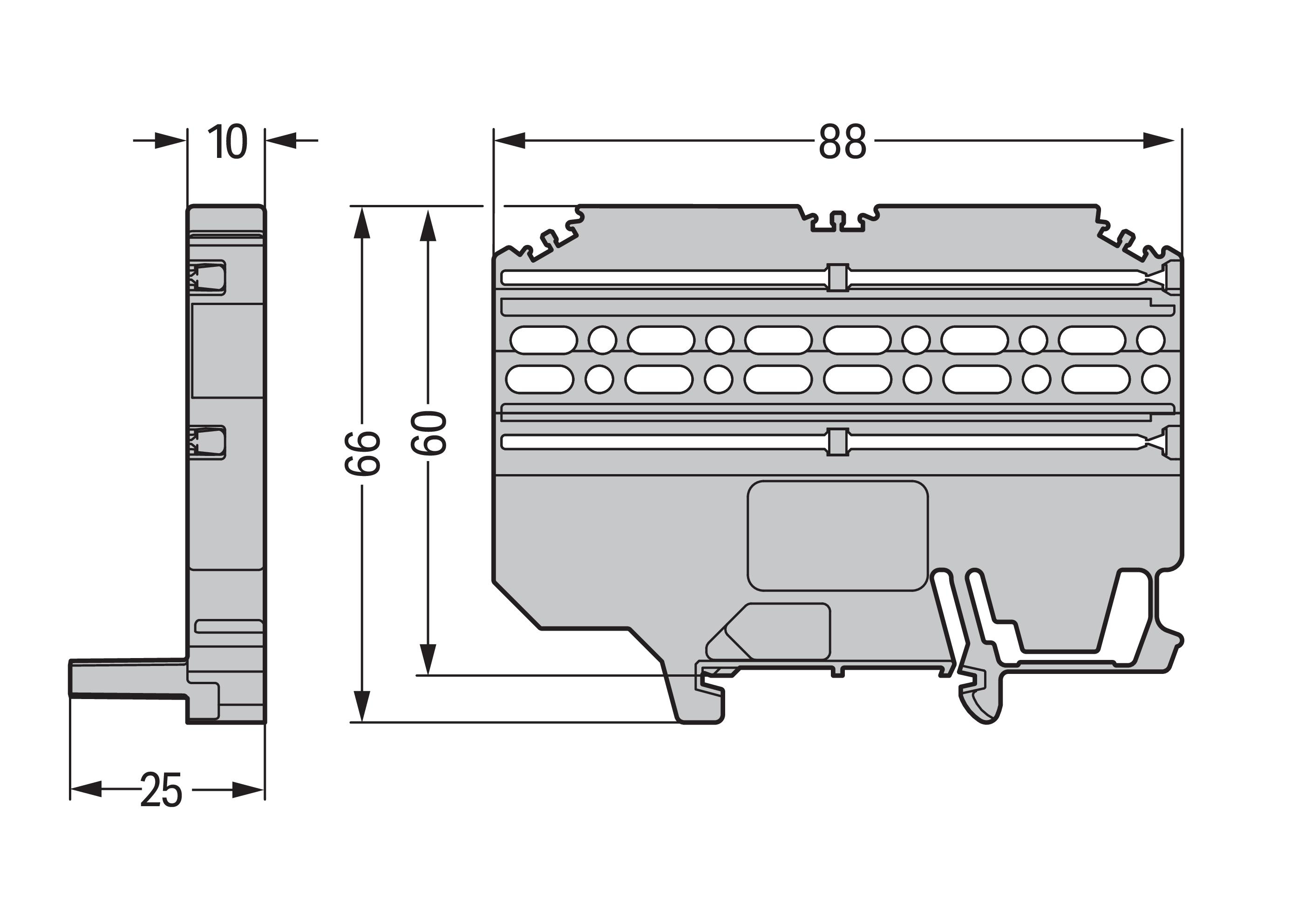Multimontageadapter voor FE+male stekers 25 mm breed VVE=25 Wago